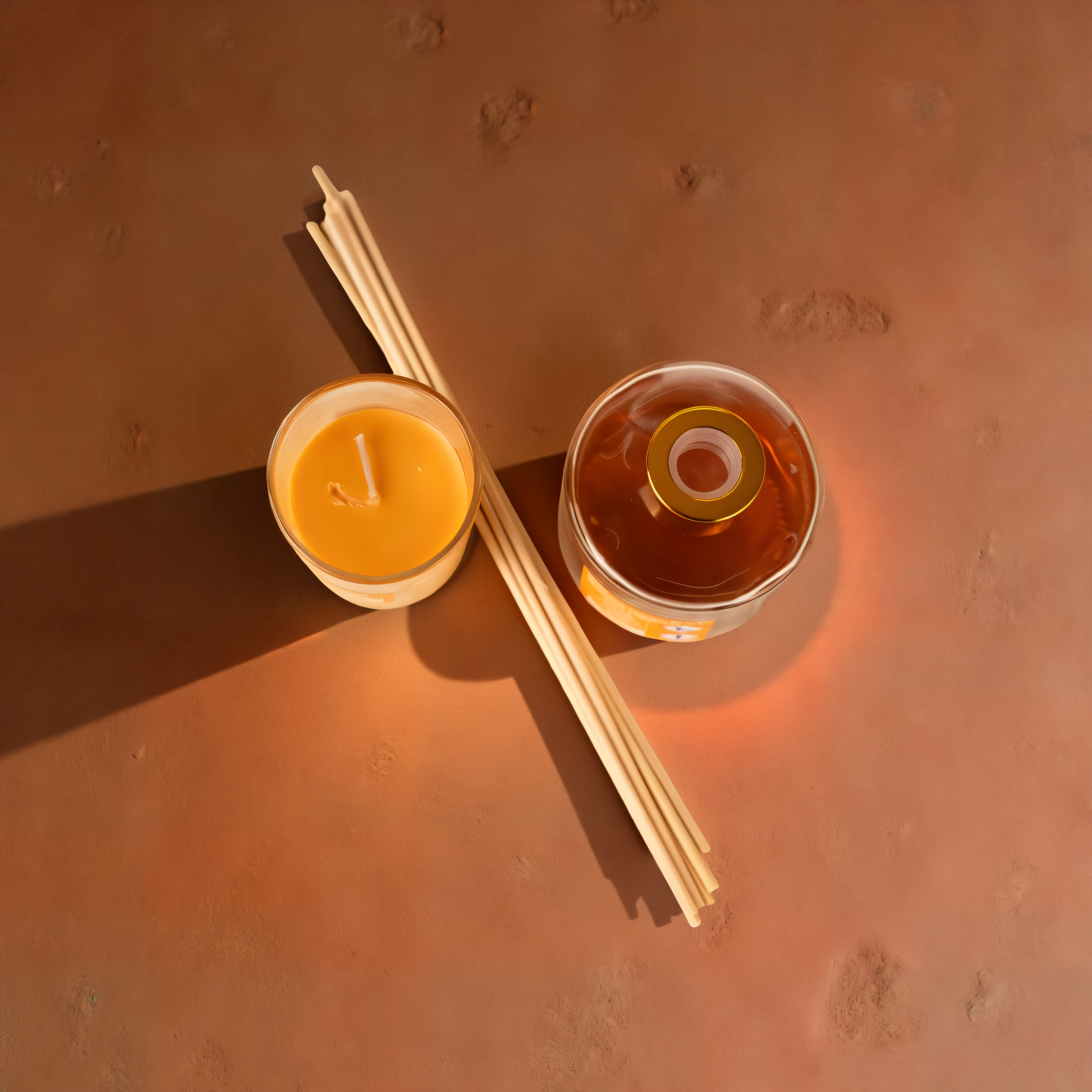 - Includes a scented candle and reed diffuser.