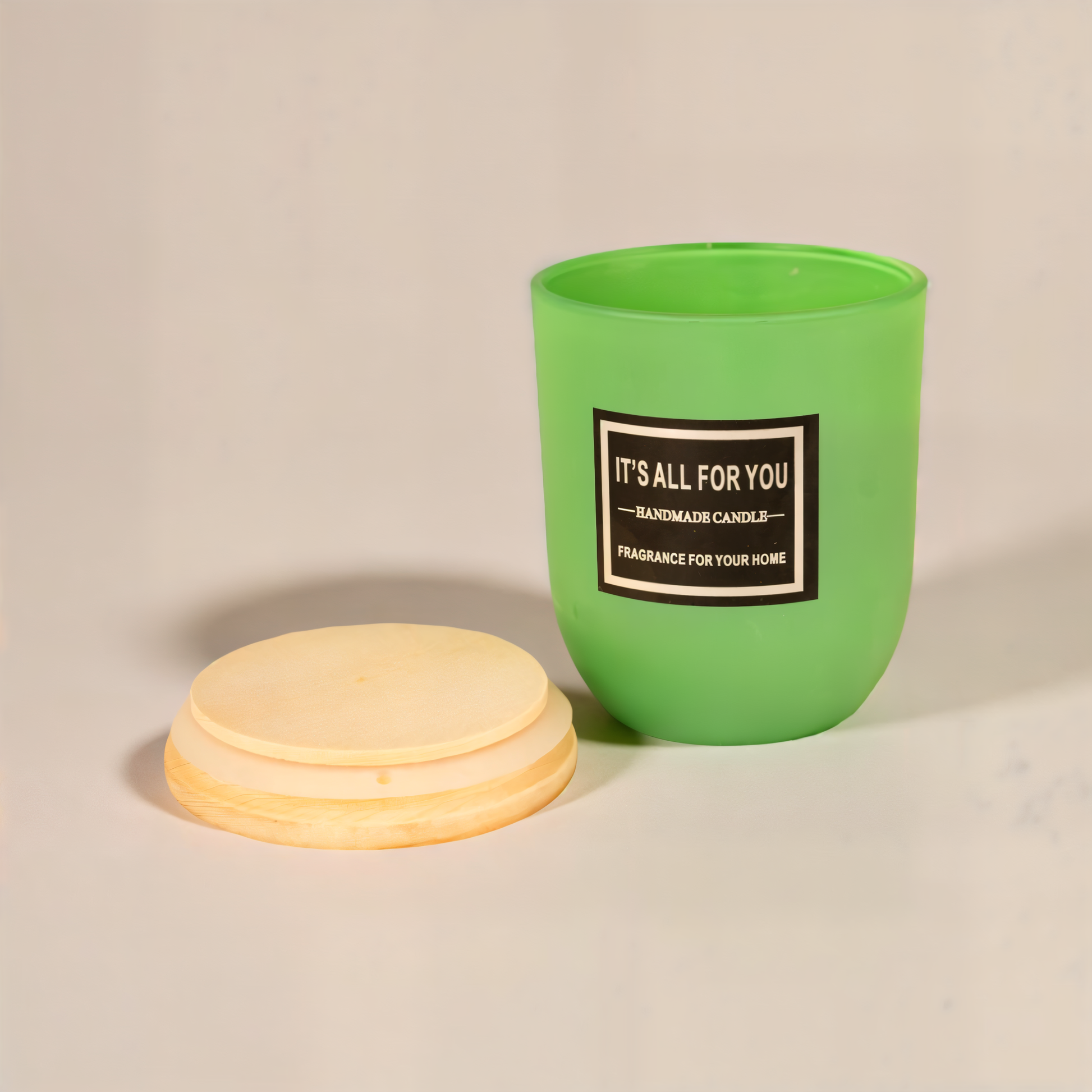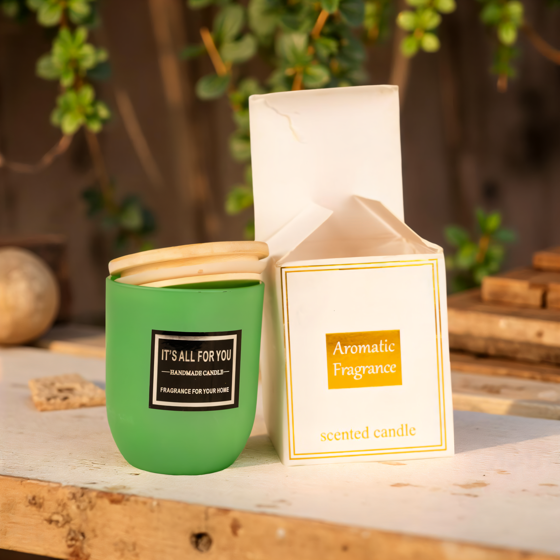 Bring elegance and soothing fragrance into your home with this handmade glass jar candle. Housed in a stylish green frosted glass container with a natural wooden lid, this candle is perfect for adding a touch of charm to your living room, bedroom, or office. Crafted with care, this scented candle is designed to create a relaxing ambiance, making it an excellent choice for home décor, meditation, romantic evenings, or as a thoughtful gift.
